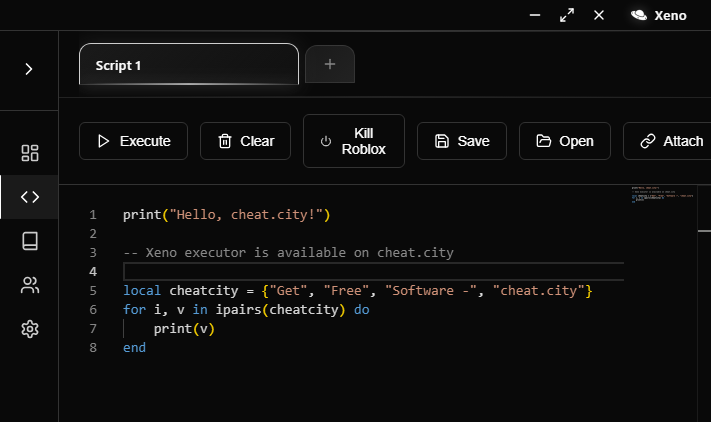 Xeno is a next-generation Roblox script executor featuring a modern code editor, multi-tab support, and lightning-fast injection. Built for performance and reliability.